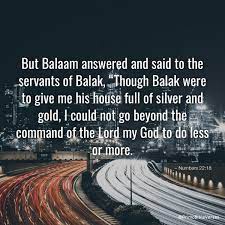 Then Balaam answered and said to the servants of Balak, “Though Balak were to give me his house full of silver and gold, I could not go beyond the word of the Lord my God, to do less or more.